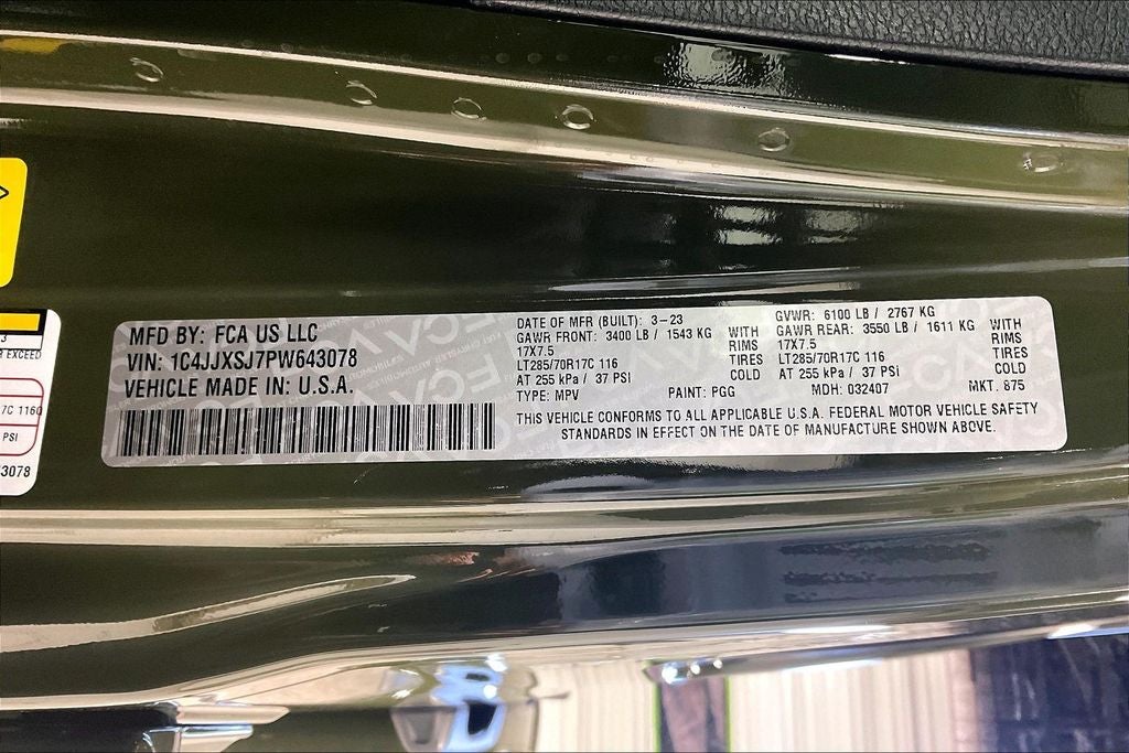 2023 Jeep Wrangler Rubicon 392 Rubicon 392 Sarge Green Clearcoat 4D Sport Utility 4WD SRT HEMI 6.4L V8 MDS 8-Speed Automatic Wrangler Rubicon 392, 4D Sport Utility, SRT HEMI 6.4L V8 MDS, 8-Speed Automatic, 4WD, Sarge Green Clearcoat, Black Leather, 7 & 4 Pin Wiring Harness, Alloy wheels, Class II Receiver Hitch, Convertible HardTop, Navigation System, Power door mirrors, Quick Order Package 27X Rubicon 392, Trailer Tow Package.