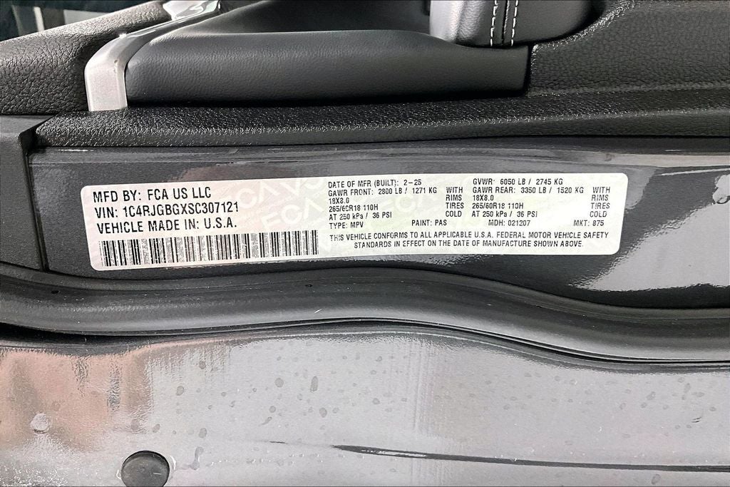 New Price! 2025 Jeep Grand Cherokee Limited Limited Baltic Gray Metallic Clearcoat 4D Sport Utility RWD 3.6L V6 24V VVT 8-Speed Automatic 1 Owner, New Feature, Apple CarPlay / Android Auto, Backup camera, Blind Spot Monitoring, Bluetooth®, Heated seats, Leather seats, Navigation system, Remote Start, Sunroof / Moonroof, has light hail, HAS LIGHT HAIL, has light hail, HAS LIGHT HAIL, Grand Cherokee Limited, 4D Sport Utility, 3.6L V6 24V VVT, 8-Speed Automatic, RWD, Baltic Gray Metallic Clearcoat, Global Black Artificial Leather, 4-Wheel Disc Brakes, 6 Speakers, ABS brakes, Active Noise Control System, Air Conditioning, Alloy wheels, AM/FM radio: SiriusXM with 360L, Audio memory, Auto High-beam Headlights, Automatic temperature control, Brake assist, Bumpers: body-color, Capri Leatherette Seats, Compass, Delay-off headlights, Driver door bin, Driver vanity mirror, Dual front impact airbags, Dual front side impact airbags, Dual-Pane Panoramic Sunroof, Electronic Stability Control, Emergency communication system, Four wheel independent suspension, Front anti-roll bar, Front Bucket Seats, Front Center Armrest w/Storage, Front dual zone A/C, Front fog lights, Front License Plate Bracket, Front reading lights, Fully automatic headlights, Garage door transmitter, Heated door mirrors, Heated front seats, Heated rear seats, Heated steering wheel, Illuminated entry, Knee airbag, Low tire pressure warning, Memory seat, Model Year Tracking, Navigation System, Normal Duty Suspension, Occupant sensing airbag, Outside temperature display, Overhead airbag, Overhead console, Panic alarm, ParkView Rear Back-Up Camera, Passenger door bin, Passenger vanity mirror, Power door mirrors, Power driver seat, Power Liftgate, Power passenger seat, Power steering, Power windows, Quick Order Package 22E, Radio data system, Rear anti-roll bar, Rear reading lights, Rear window defroster, Rear window wiper, Remote keyless entry, Security system, Speed control, Speed-Sensitive Wipers, Split folding rear seat, Spoiler, Steering wheel mounted audio controls, Tachometer, Telescoping steering wheel, Tilt steering wheel, Traction control, Trip computer, Turn signal indicator mirrors, Variably intermittent wipers, Voltmeter, Wheels: 18 x 8 Polished/Painted Aluminum.
