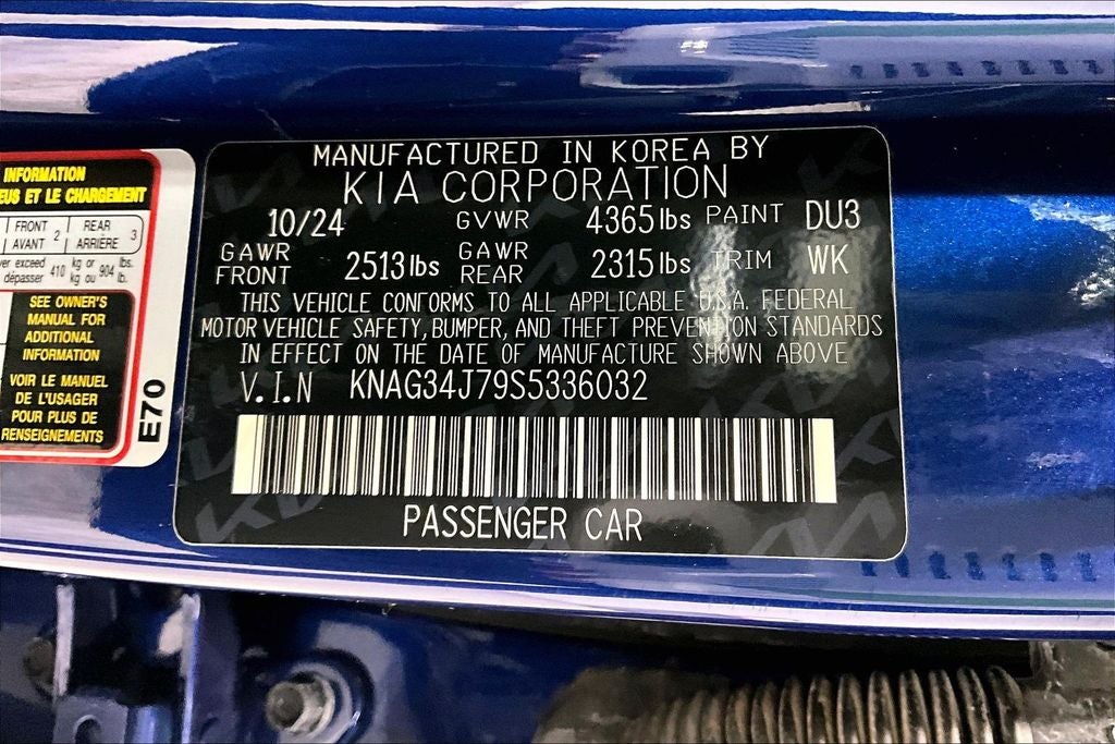 New Price! 2025 Kia K5 EX EX Yacht Blue 4D Sedan FWD I4 8-Speed Automatic 1 Owner, New Feature, Apple CarPlay / Android Auto, Backup camera, Bluetooth®, K5 EX, 4D Sedan, I4, 8-Speed Automatic, FWD, Yacht Blue, Black Cloth, 12 Speakers, 4-Wheel Disc Brakes, ABS brakes, Air Conditioning, Alloy wheels, AM/FM radio: SiriusXM, Auto High-beam Headlights, Automatic temperature control, Brake assist, Bumpers: body-color, Carpeted Floor Mats, Delay-off headlights, Driver door bin, Driver vanity mirror, Dual front impact airbags, Dual front side impact airbags, Electronic Stability Control, Emergency communication system: Kia Connect (includes 1 year free trial), Four wheel independent suspension, Front anti-roll bar, Front Bucket Seats, Front Center Armrest, Front dual zone A/C, Front reading lights, Fully automatic headlights, Heated & Ventilated Front Bucket Seats, Heated door mirrors, Heated front seats, Heated steering wheel, Illuminated entry, Knee airbag, Leather Shift Knob, Leather steering wheel, Low tire pressure warning, Memory seat, Navigation System, Occupant sensing airbag, Outside temperature display, Overhead airbag, Overhead console, Panic alarm, Passenger door bin, Passenger vanity mirror, Power door mirrors, Power driver seat, Power moonroof, Power passenger seat, Power steering, Power windows, Radio data system, Radio: AM/FM Audio System, Rear anti-roll bar, Rear reading lights, Rear seat center armrest, Rear side impact airbag, Rear window defroster, Remote keyless entry, Security system, Speed control, Speed-sensing steering, Split folding rear seat, Steering wheel mounted audio controls, SynTex Seat Trim, Tachometer, Telescoping steering wheel, Tilt steering wheel, Traction control, Trip computer, Turn signal indicator mirrors, Variably intermittent wipers, Ventilated front seats, Wheels: 18 x 7.5J Gloss Black Machined Finish Alloy.
